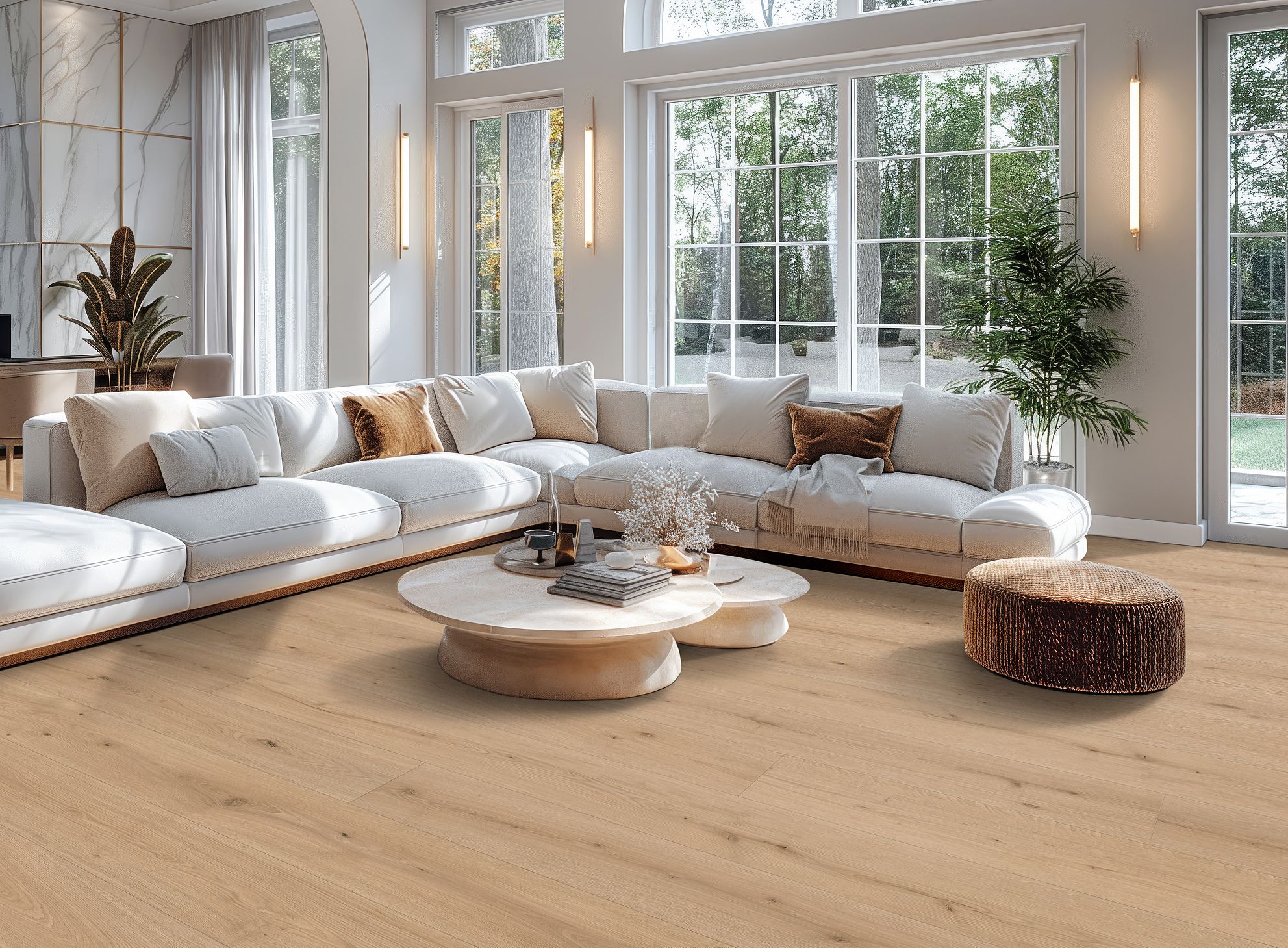 Clean oak designs in the Belhancourt collection showcase sleek, contemporary styles with a refined palette. The collection spans airy light tones, modern mid grays, inviting warm honeys, and sophisticated cool browns, off ering a versatile foundation for both classic and modern interiors.