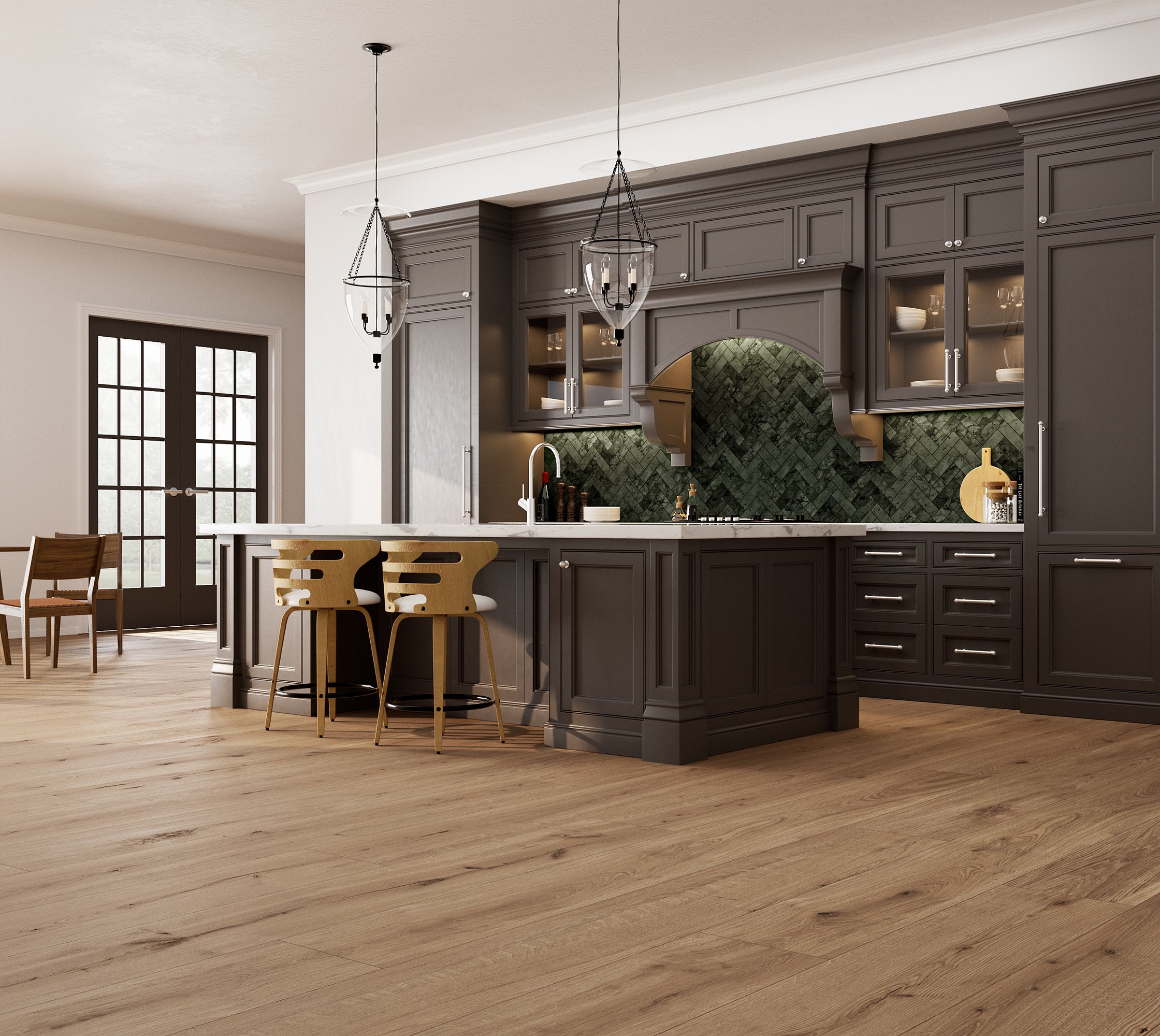 Clean oak designs in the Belhancourt collection showcase sleek, contemporary styles with a refined palette. The collection spans airy light tones, modern mid grays, inviting warm honeys, and sophisticated cool browns, off ering a versatile foundation for both classic and modern interiors.